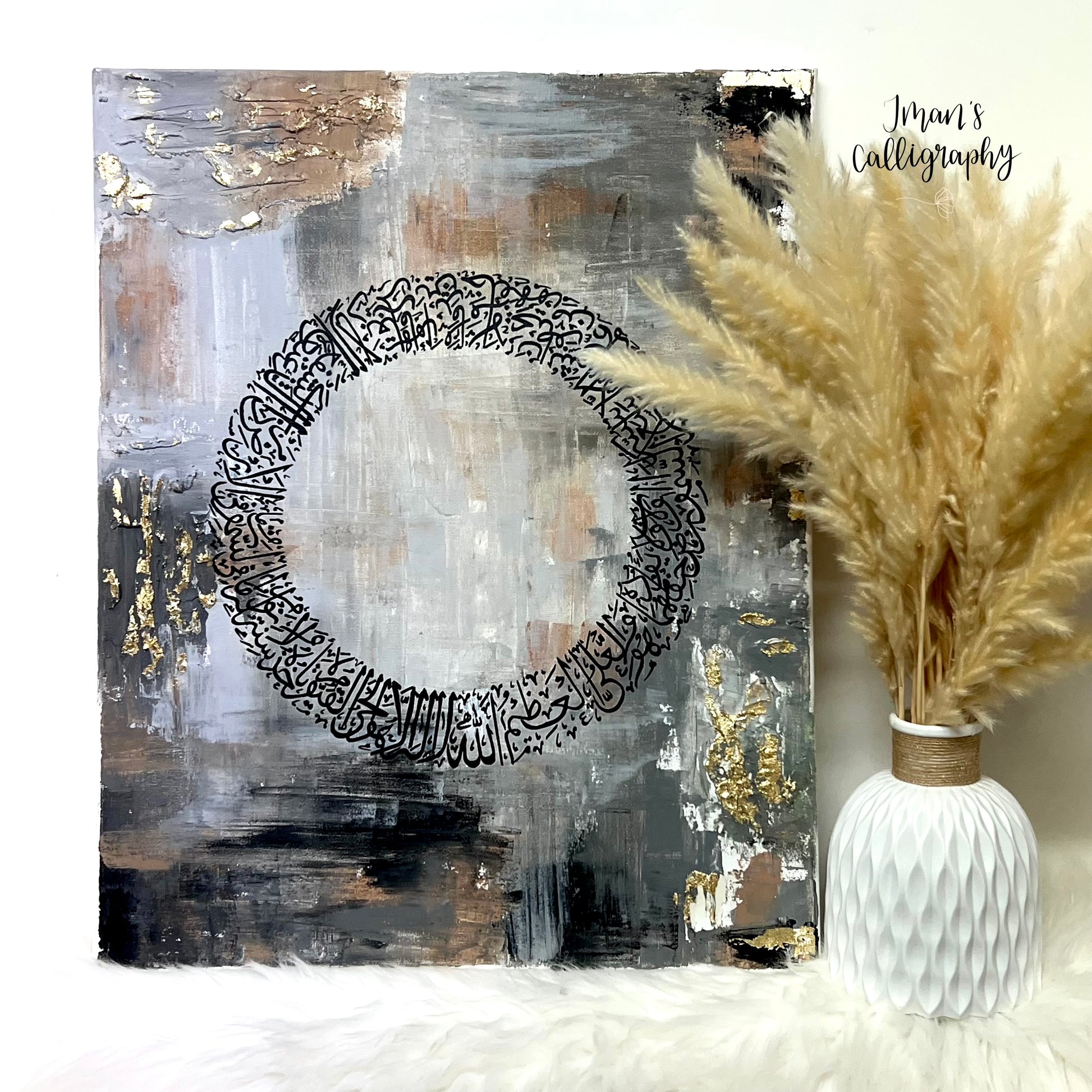 Ayat Ul Kursi (The Throne Verse), written on a 40cm x 50cm abstract background.
