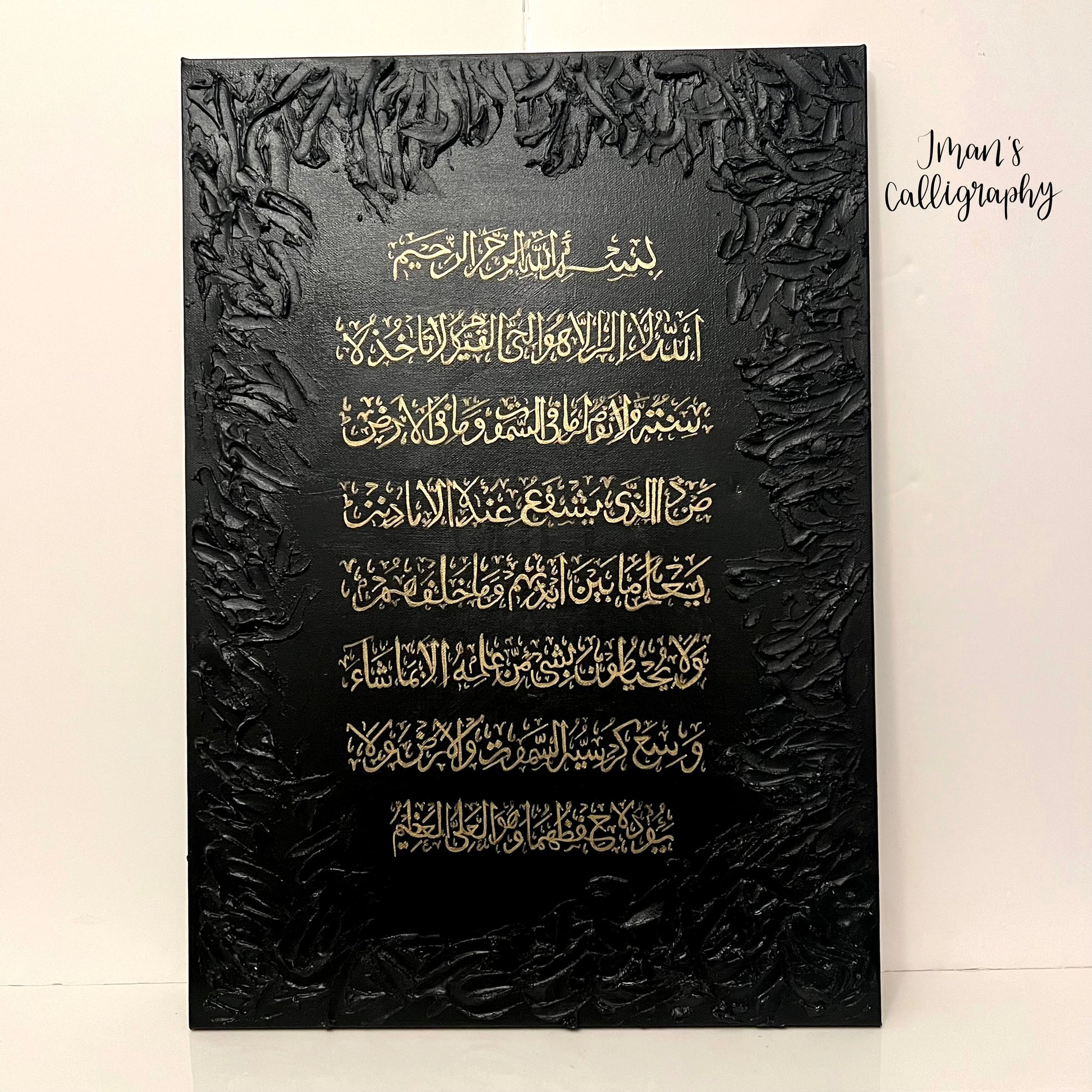 Textured bordered canvas with gold Ayat Ul Kursi
